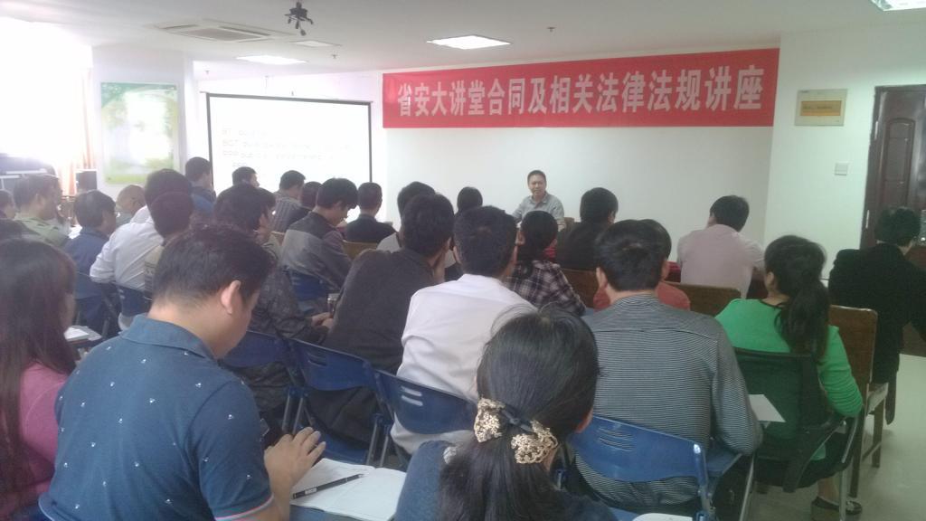 10月24日上午,省安大講堂“合同及相關法律法規專題講座”在公司職工之家如期舉行。本期講座邀請了集團公司總法律顧問申玉恩為大家授課。公司黨委書記、紀委書記胡六中,工會主席李原,公司機關及分公司中層以上管理人員、相關部門員工70余人參加了培訓。