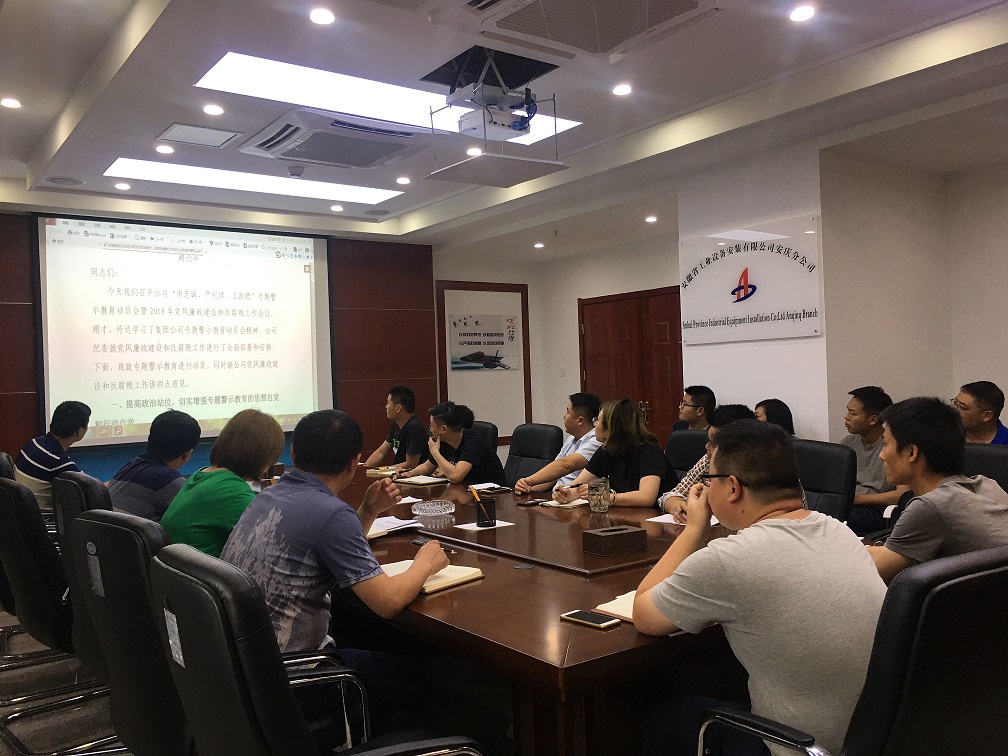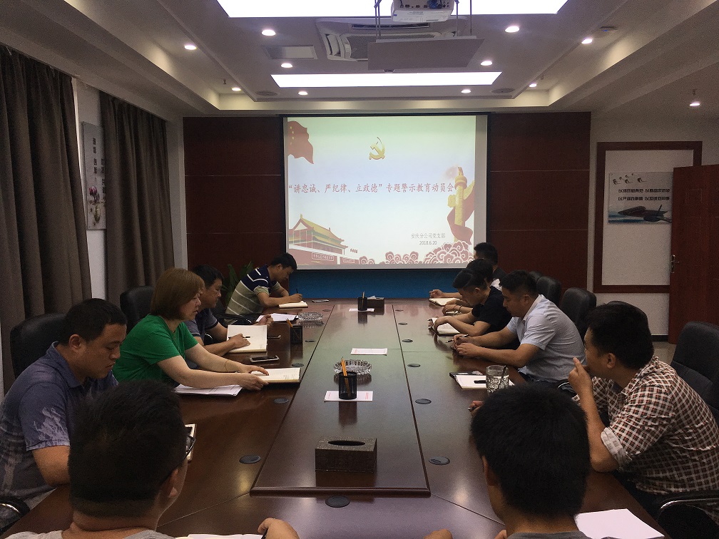 6月20日下午,安慶分公司黨支部召開了“講忠誠、嚴(yán)紀(jì)律、立政德”專題警示教育動員擴(kuò)大會議,分公司全體員工參加動員會。