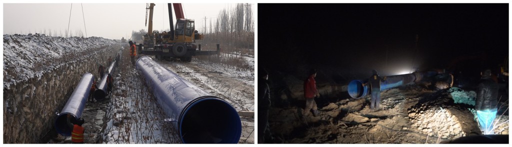 該工程是在野外長距離作業(yè),管道沿途需要穿過高速、省道、鐵路、亞歐光纜及眾多鄉(xiāng)村道路和田間陰溝,施工區(qū)域內(nèi)有農(nóng)田、戈壁、沙漠,沼澤等,自然環(huán)境極其惡劣,施工地質(zhì)極為復(fù)雜。尤其在步入11月,新疆烏蘇市正式進(jìn)入寒冬季節(jié),期間平均氣溫都在零下十度以下,并時(shí)常飛舞著雪花,由于晝夜溫差大,夜間項(xiàng)目上的氣溫更是達(dá)到零下二三十度,這給項(xiàng)目部施工帶來了嚴(yán)重挑戰(zhàn),但項(xiàng)目部員工沒有被惡劣的環(huán)境所嚇倒,他們“逢山開路、遇水搭橋”,努力克服各方面不利因素,合理安排施工進(jìn)度計(jì)劃。全體職工發(fā)揚(yáng)安徽建工人“特別能吃苦,特別能戰(zhàn)斗”的企業(yè)作風(fēng),在公司“大干60天”勞動(dòng)競(jìng)賽的正向激勵(lì)下,不畏環(huán)境艱苦,抓質(zhì)量,保安全,戰(zhàn)荒漠,斗嚴(yán)寒,每天堅(jiān)持戰(zhàn)斗在生產(chǎn)第一線,哪里有施工,哪里就有管理人員的堅(jiān)定身影。