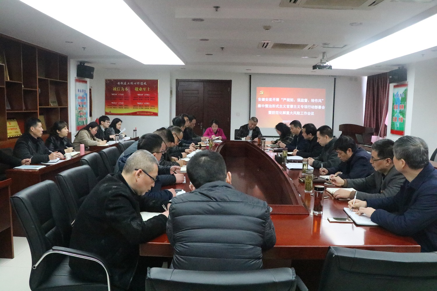 會上,傳達學習了集團所屬單位黨委書記抓黨建述職評議會和集中整治形式主義官僚主義專項行動推進會暨防范化解重大風險工作會議精神,部署了《安徽安裝公司黨委關于開展“嚴規矩、強監督、轉作風”集中整治形式主義官僚主義專項行動實施方案》和《安徽安裝公司黨委關于堅決打好防范化解重大風險攻堅戰的安排意見》,成立了集中整治專項行動領導小組和防范化解重大風險工作領導小組。