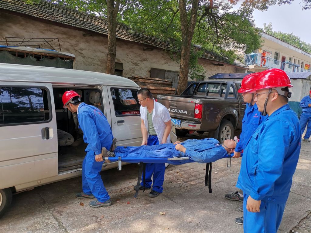 下午2點,隨著現場警報器長笛示警,應急救援演練拉開了序幕。施工班組負責人命令現場立即停止作業,所有施工人員撤離出吊裝現場,并立即撥打120急救電話報告現場安全員。在接到通知后,項目部立即啟動應急預案,并組織各小組進行救援。警戒組封鎖事故現場,維持現場秩序;醫療救護組對傷員進行了簡單的救治和護理;疏散組負責對現場與救援無關人員進行疏散,防止事態擴大。各組各司其職,演練現場井然有序,最后救護車輛和醫療人員趕到現場,將傷員送往醫院,演練活動結束。