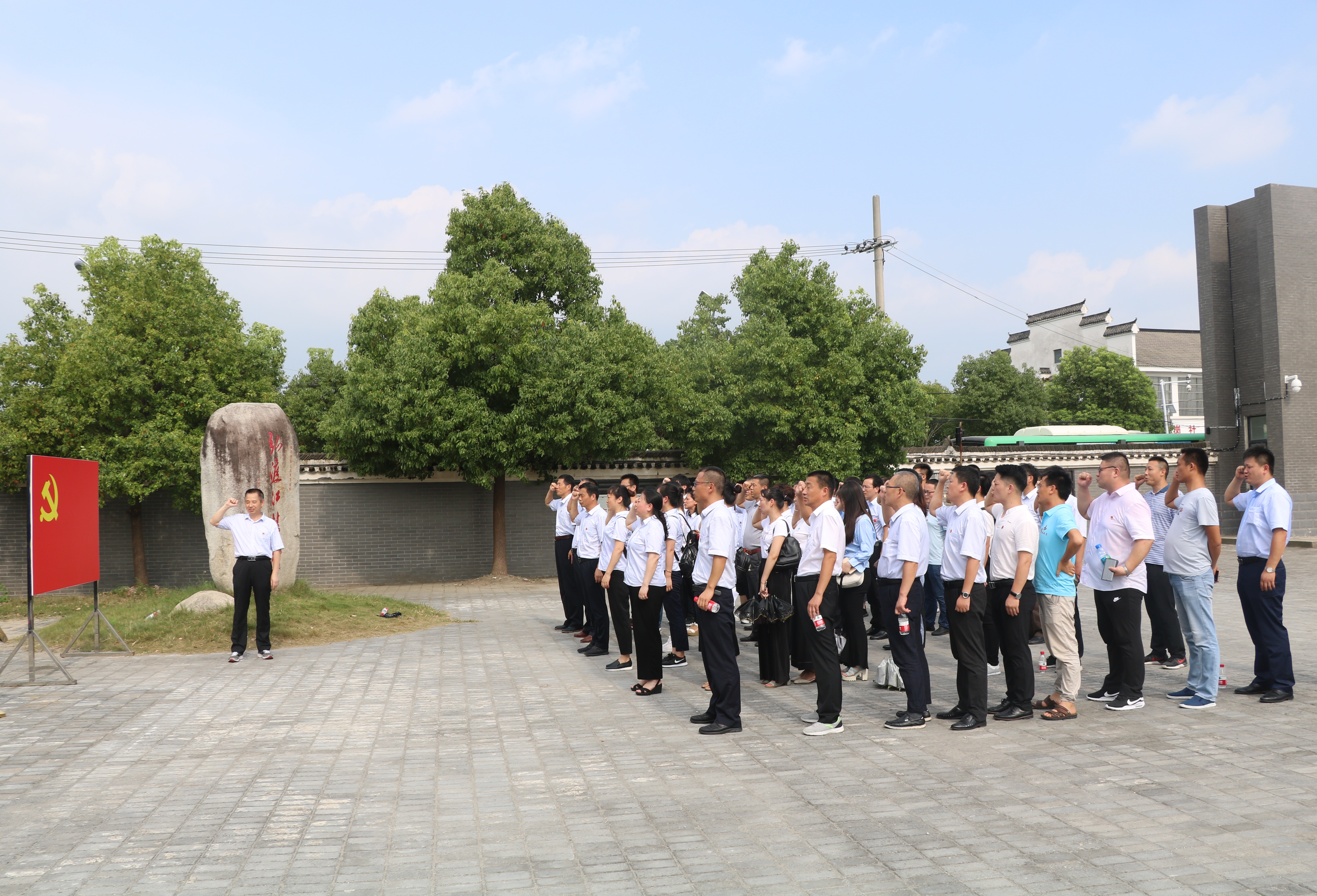 大家首先觀看了關(guān)于渡江戰(zhàn)役總前委舊址紀(jì)念館的紀(jì)錄片。隨后黨委書記、董事長(zhǎng)胡六中帶領(lǐng)全體黨員在黨旗面前重溫入黨誓詞。