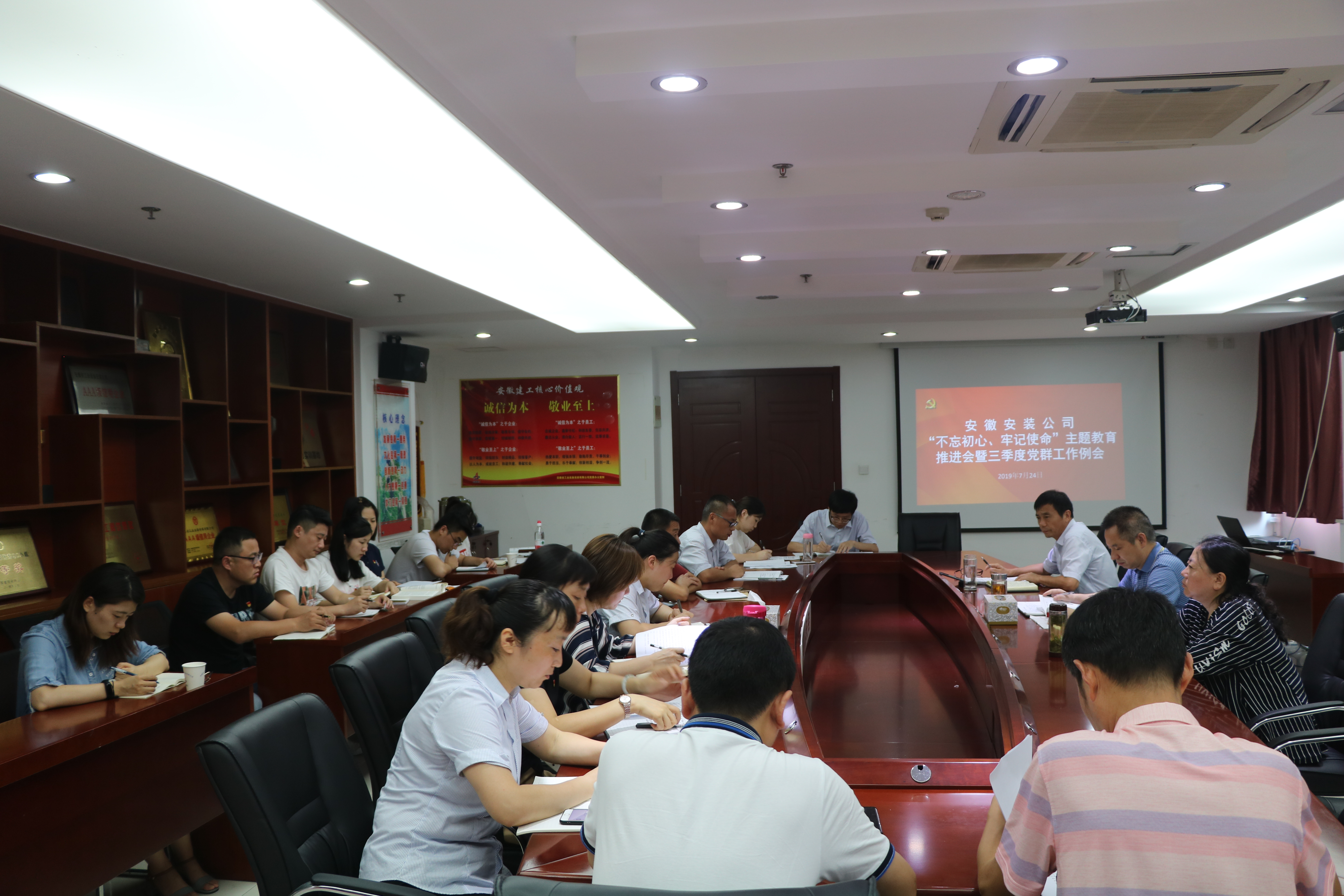7月24日下午,安徽安裝公司黨委召開(kāi)“不忘初心、牢記使命”主題教育工作推進(jìn)會(huì)暨三季度黨群工作會(huì)議。公司有關(guān)領(lǐng)導(dǎo)、黨群部門(mén)人員、所屬各黨支部書(shū)記、工會(huì)及團(tuán)支部主要負(fù)責(zé)同志參加會(huì)議,會(huì)議由公司黨委委員、紀(jì)委書(shū)記、工會(huì)主席李寬旭主持。