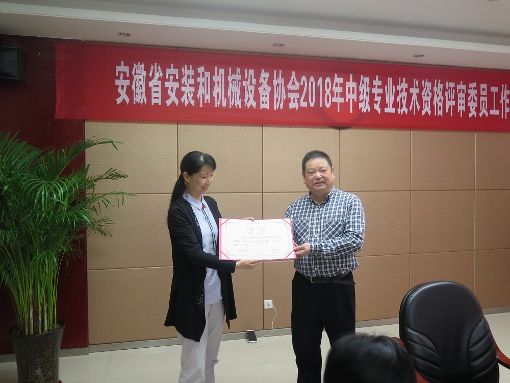 為深入學(xué)習(xí)了解職稱評審相關(guān)政策,進(jìn)一步提高評委業(yè)務(wù)素質(zhì)和職稱評審質(zhì)量,協(xié)會按照評審要求,經(jīng)過前期精心準(zhǔn)備召開了本次會議。首先李會長宣讀了省人社廳《關(guān)于同意成立機(jī)電安裝和機(jī)械設(shè)備中級專業(yè)技術(shù)資格評審委員會的函》(皖人社函〔2017〕486號),王會長依次向評委們頒發(fā)《中級專業(yè)技術(shù)資格評審委員會》委員聘書。秘書長杜慶梅宣讀省人社廳關(guān)于印發(fā)《安徽省職稱評審委員會組織管理辦法》的通知(皖人社發(fā)〔2018〕3號),現(xiàn)場組織大家學(xué)習(xí)相關(guān)規(guī)定。