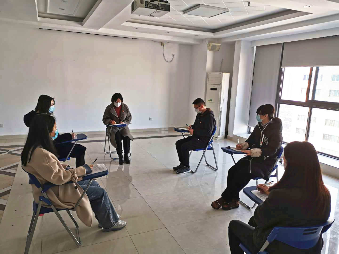 3月11日下午,機關團支部召開理論學習會,學習宣貫集團、公司兩級職代會精神和疫情防控相關文件,會議由團支部書記胡欣欣主持。為嚴格落實好疫情防控工作要求,團支部在召開會議之前,對會場做好衛生清掃、消毒通風等工作,同時桌椅間隔一米以上。
