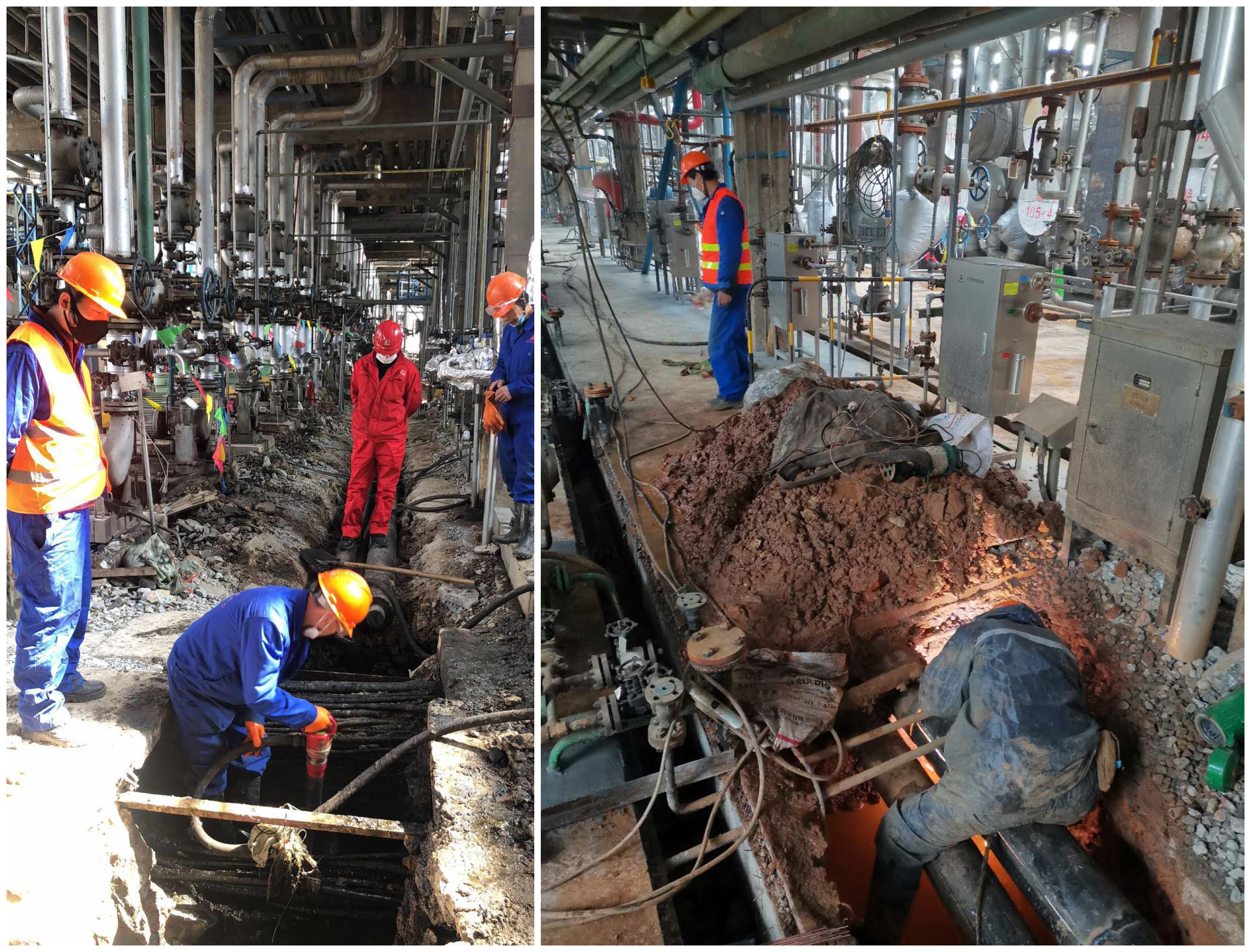 “新增機泵密閉排放項目”屬于改造、改善項目,主要改善機泵廢油回收,整個改造項目距離長約2000米,縱跨五套裝置,均為老廠區內施工,廢油管道要在原有管廊上鋪設,存在間距小、排放難問題,地管開挖滲油多,地下老管線及原有電纜又錯綜復雜,施工難度很大。另外管道內汽油、柴油、液化氣介質多,氣割管道安全風險高。面對艱巨任務,項目部特意組織專業技術高、施工能力強、有著多年在石油、化工行業及安裝過大型靜設備的施工隊伍進行施工,并積極與業主、監理溝通,做好環境分析、安全和技術交底,同時現場布置足夠的消防器材、勞動保護用品等,通過不懈努力,該項目重大施工階段已平穩落地,現階段正在進行電氣儀表、防腐保溫等后期配套工程階段。