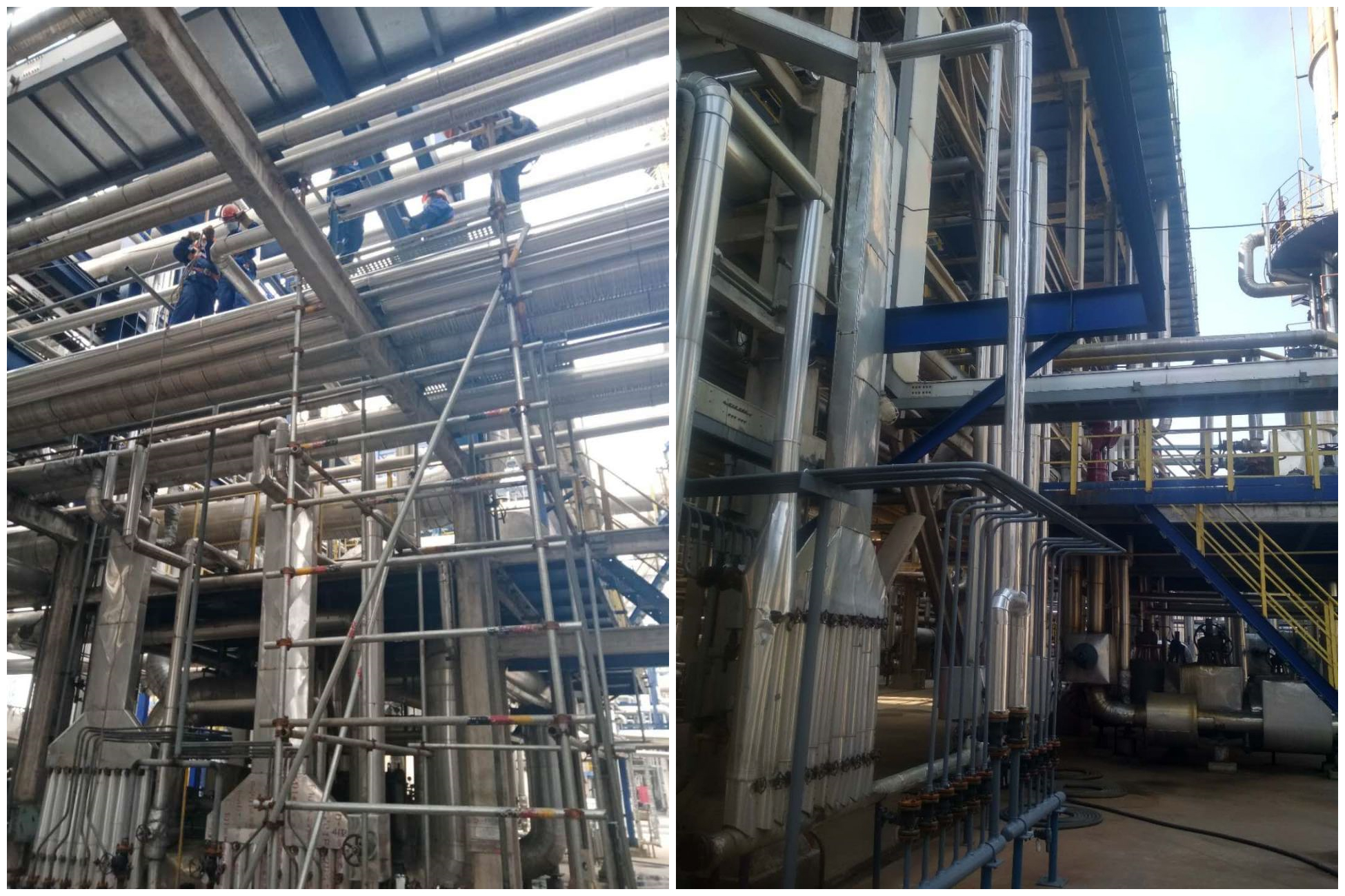 眾人拾柴火焰高,團結起來勇向前。施工工人們在各個項目現場忙著搭建腳手架、吊裝設備、焊接管道、敷設電纜、調試儀表、開挖基坑、排水及設備基礎的施工等等。現場管理人員也是有條不紊的按工序要求組織工人們交錯施工,五個項目作業面全力展開……緊張繁忙的施工氣息撲面而來。