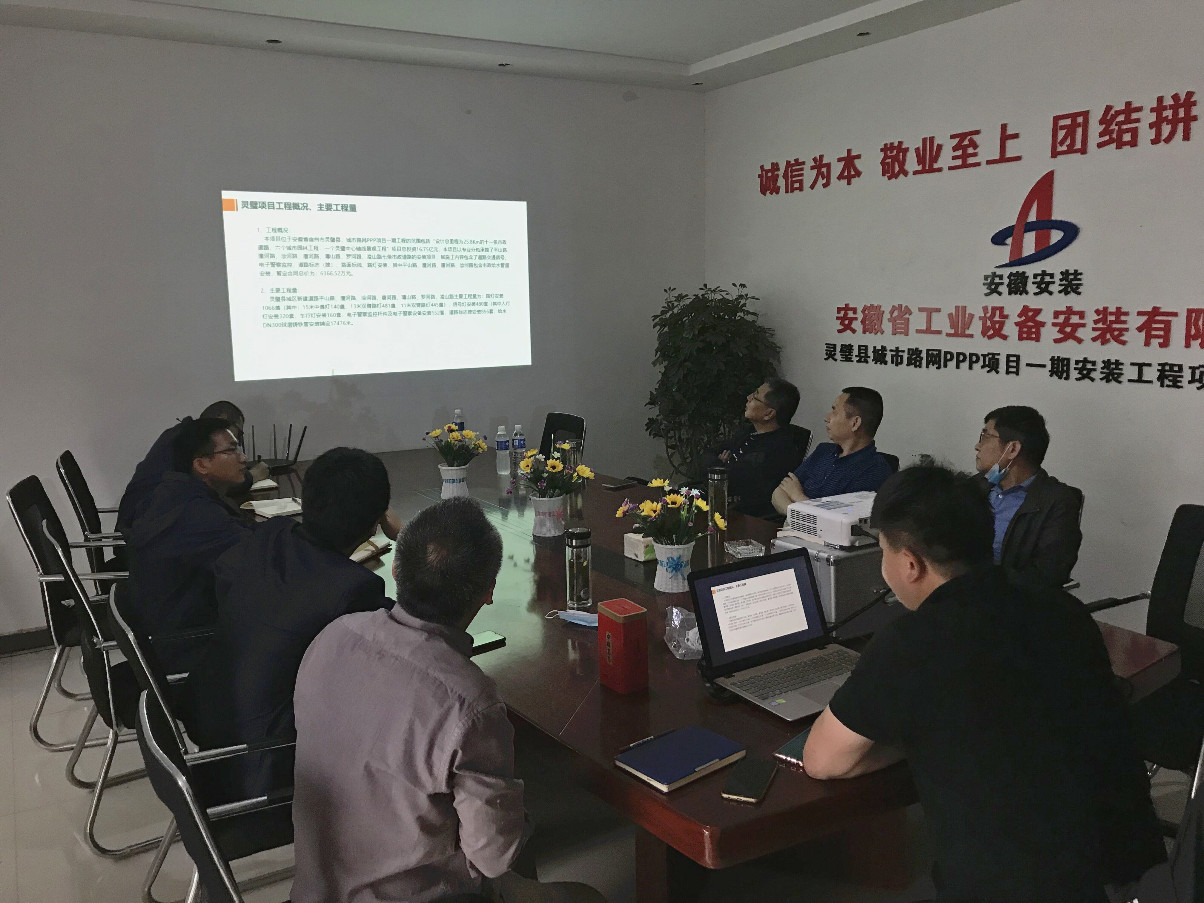 5月8日上午,安徽安裝公司黨委書記、董事長胡六中,深入靈璧縣城市路網安裝項目調研指導工作。公司副總經理劉安俊,總會計師張元斌,總經理助理、合肥分公司經理趙永峰參加調研會。