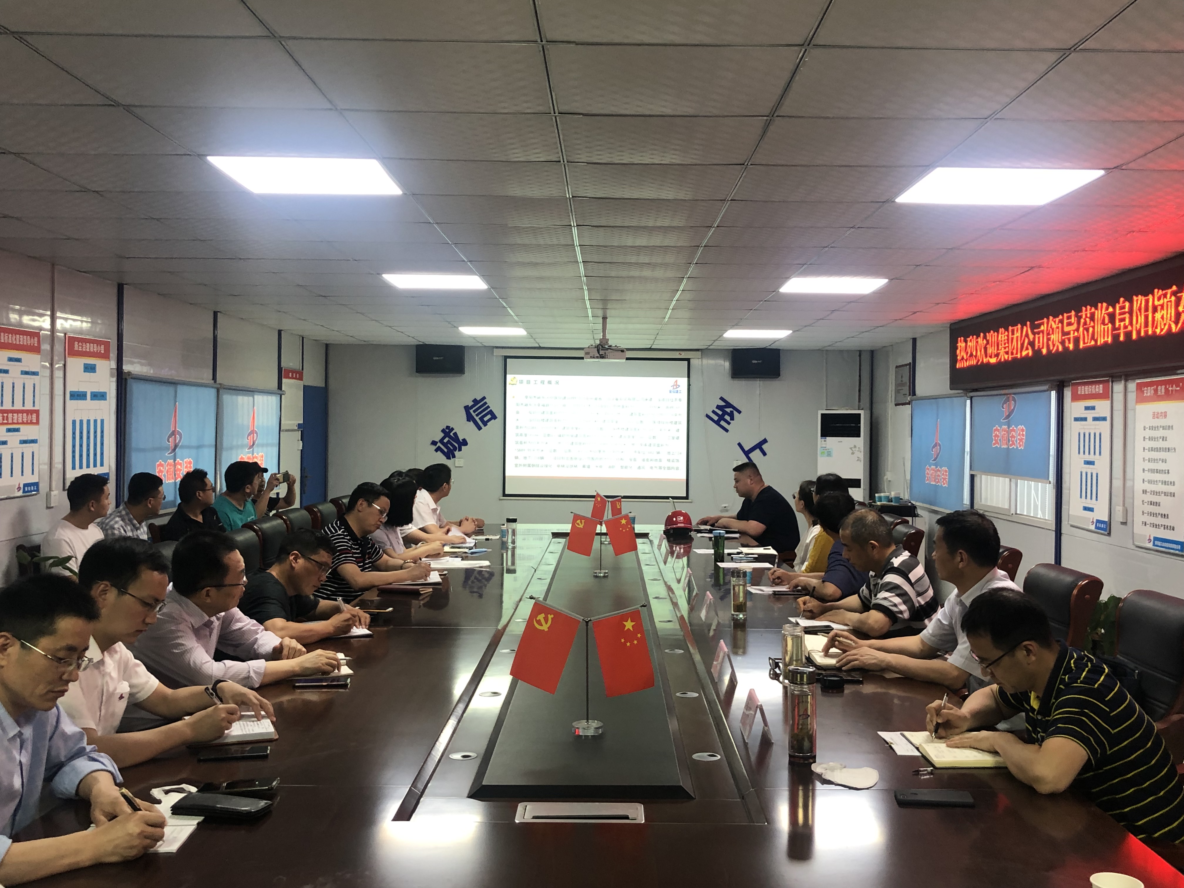 5月22日,建工控股黨委工作部(黨委宣傳部)部長、股份公司黨委副書記徐文聯一行赴阜陽潁東中醫院建設PPP項目進行“黨員先鋒號”驗收指導工作。安徽安裝公司副總經理高飛,紀委書記、工會主席李寬旭等參加。