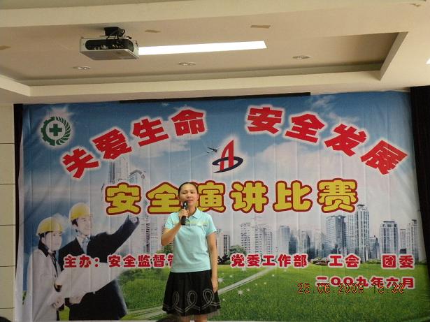 我公司選派的參賽選手姚春靜同志,以一場“生命之歌、安全之路”的精彩演講,博得現場聽眾的陣陣掌聲,最終獲得了一等獎的好成績。