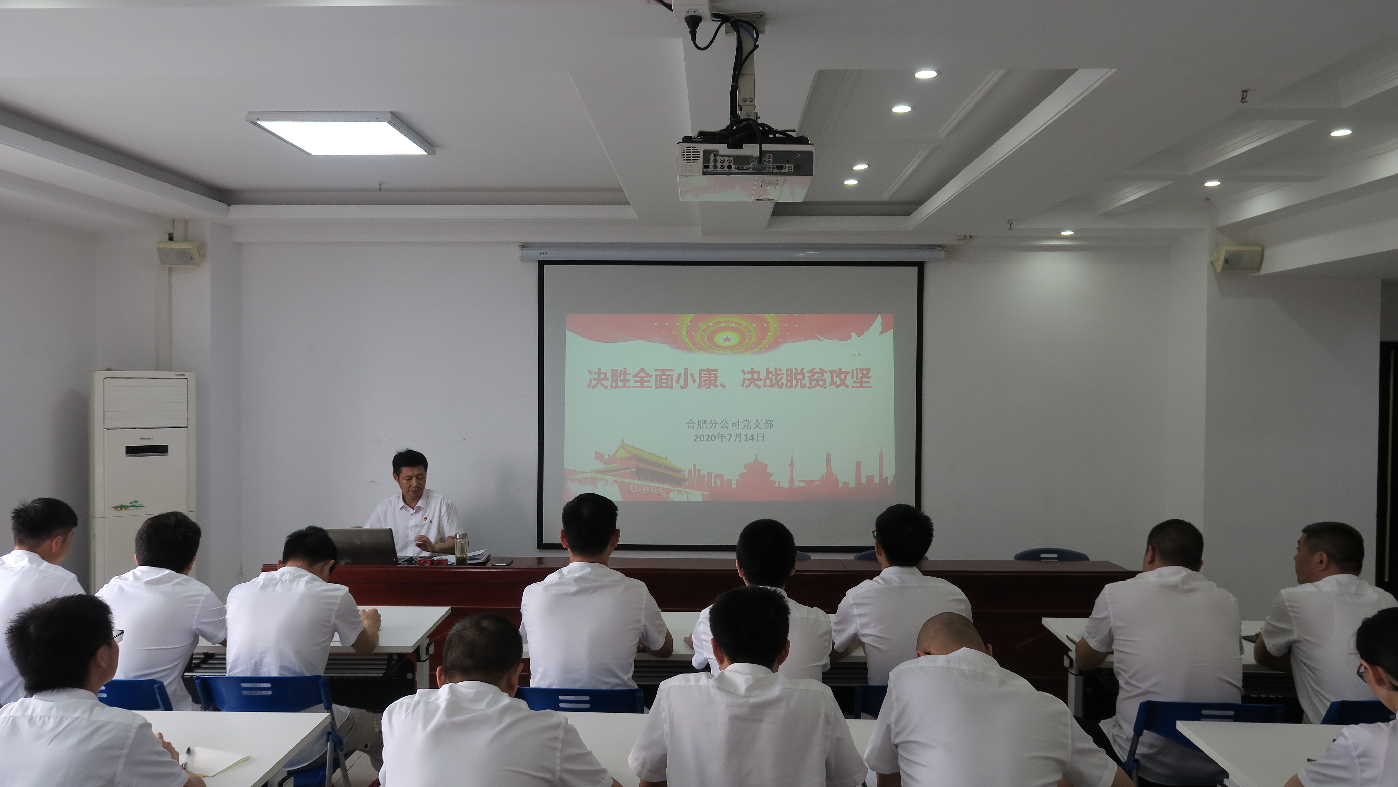 2020年是脫貧攻堅的決勝之年。根據公司黨委統一部署,7月14日,合肥分公司黨支部組織開展了“舉旗幟送理論”微宣講活動。黨支部書記胡迎東緊緊圍繞“決勝全面小康、決戰脫貧攻堅”這一主題,在分公司廣大黨員職工中進行了宣講。