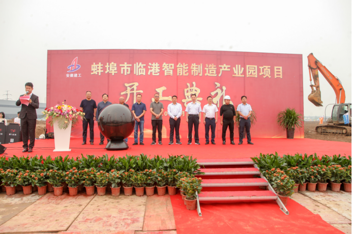9月22日上午,雨過天晴,由安徽省工業設備安裝有限公司蚌埠分公司承建的蚌埠市臨港智能制造產業園項目現場彩旗飄揚,迎賓曲歡快熱烈,挖掘機整裝待發;綴著橫幅的空飄猶如一串串大紅燈籠高掛在空中,到處洋溢著喜悅的氛圍,蚌埠市臨港智能制造產業園項目開工典禮在此隆重舉行。