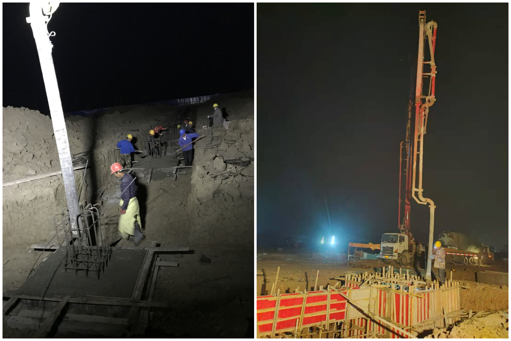 初冬以至,天氣漸寒,項(xiàng)目上卻是一片大干的火熱景象,放線測(cè)量、鋼筋焊接、承臺(tái)澆筑……所有施工機(jī)械滿負(fù)荷運(yùn)轉(zhuǎn),所有項(xiàng)目人員均在生產(chǎn)一線爭(zhēng)分奪秒。按照原施工計(jì)劃,臨港項(xiàng)目189個(gè)承臺(tái)的鋼筋捆扎焊接及三千余立方的混凝土澆筑應(yīng)在11月底完成,但晴雨表顯示11月下旬均為陰雨天,所以必須提前完成此項(xiàng)施工任務(wù)。時(shí)間緊、任務(wù)重,項(xiàng)目部立刻行動(dòng)起來(lái),及時(shí)調(diào)整施工及進(jìn)度方案,加大人力、物力的投入,全體員工主動(dòng)放棄休息,不分晝夜、“5+2”“白+黑”,輪流堅(jiān)守在施工現(xiàn)場(chǎng)。臨港的夜幕已經(jīng)緩緩降臨,但項(xiàng)目上仍然人頭攢動(dòng)、身影忙碌,施工人員在黑夜的畫紙上勾勒出了一副“大干快上,只爭(zhēng)朝夕”的場(chǎng)景。