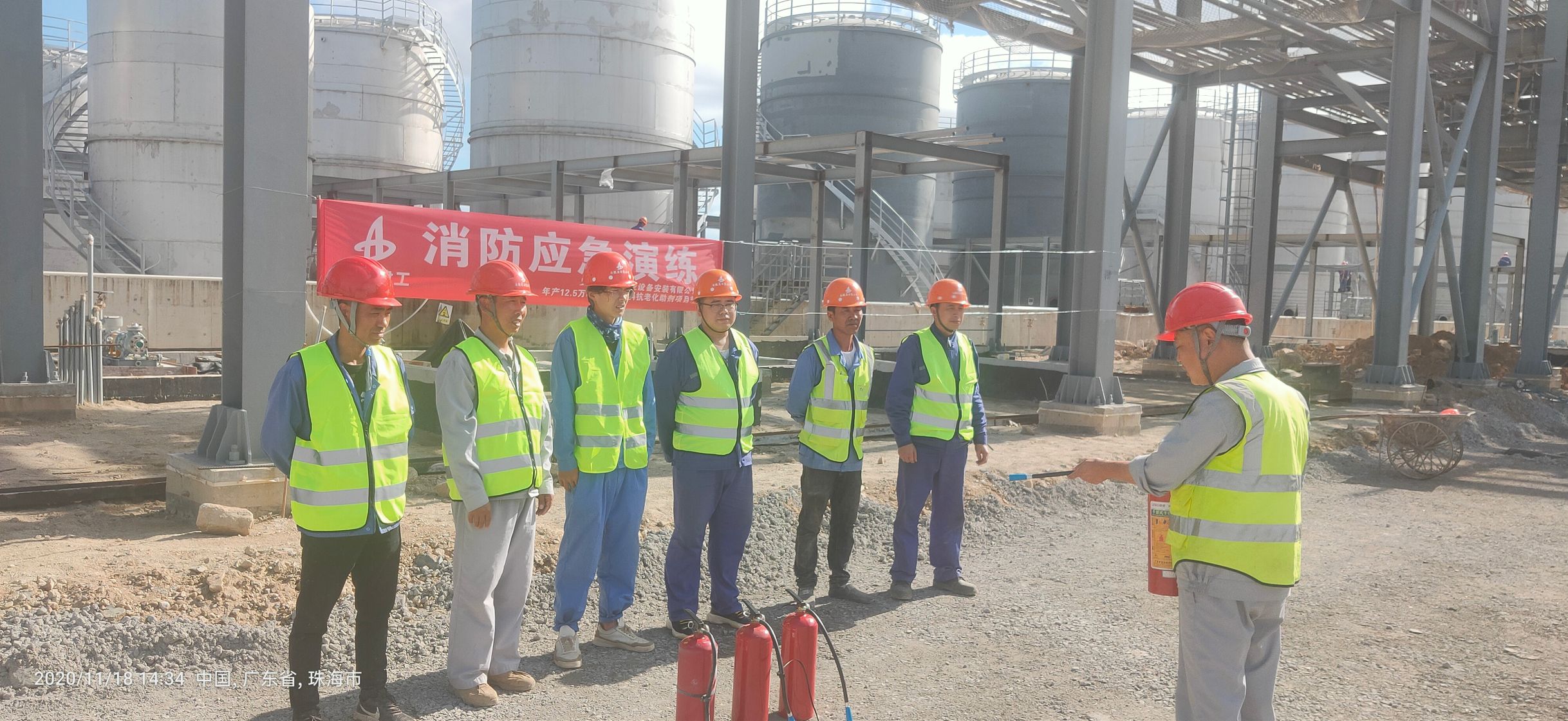 為了進一步做好項目現場安全工作,增強施工人員的消防安全意識,利用“消防日”活動契機,11月18日,西北分公司珠海利安隆項目部組織員工開展了“冬季消防應急演練”活動。此次演練活動由項目部安全負責人、各班組組長及生產工人共同參加。