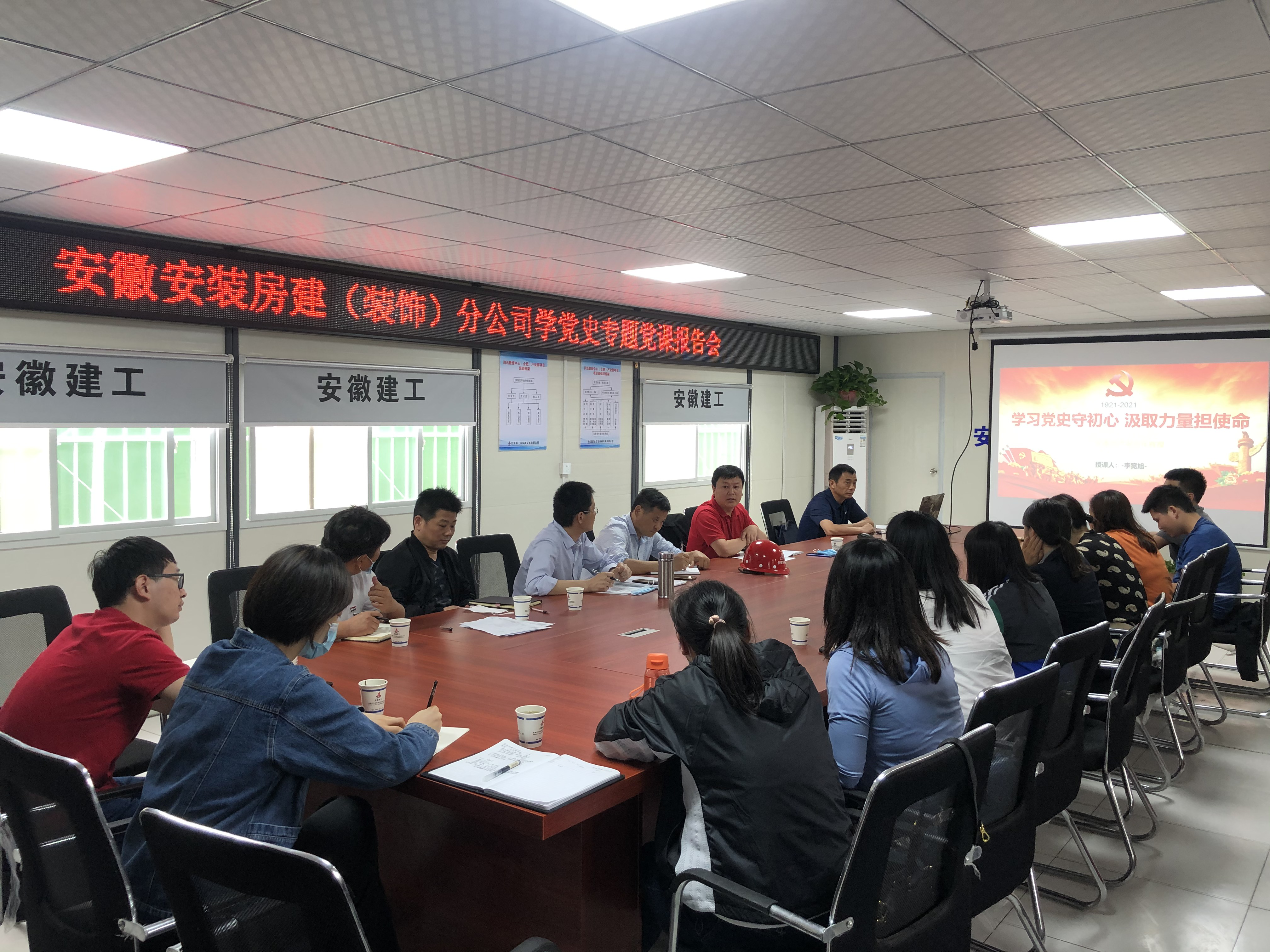 5月21日下午,根據公司黨委黨史學習教育計劃安排,公司紀委書記、工會主席李寬旭赴房建(裝飾)分公司潤迅數據中心(合肥)產業園項目作基層黨史學習教育專題黨課報告,房建(裝飾)分公司機關人員、項目一線職工、團員青年等30余人參加了會議。