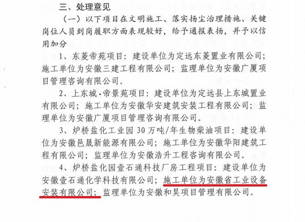 2021年8月10日上午,定遠縣住房和城鄉建設局領導蒞臨壹石通項目檢查指導工作,并于2021年8月18日下文對壹石通項目表彰。