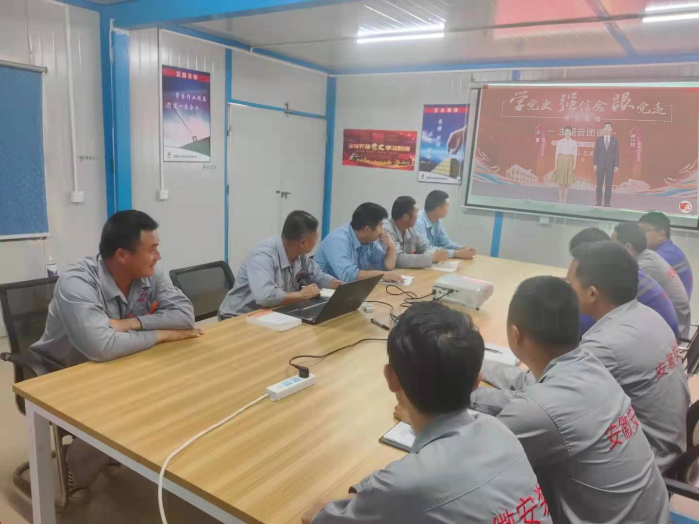 項(xiàng)目部積極響應(yīng)公司黨史學(xué)習(xí)教育要求,促進(jìn)黨史學(xué)習(xí)充分融入生產(chǎn)一線,營造出濃厚的“學(xué)黨史、促生產(chǎn)”的良好氛圍。5月1日,項(xiàng)目部開展了黨史學(xué)習(xí)教育交流會,會上項(xiàng)目部黨員皮軍同志帶領(lǐng)大家集中學(xué)習(xí)了《中國共產(chǎn)黨基本知識》并開展了黨史學(xué)習(xí)交流討論。5月4日,項(xiàng)目部組織團(tuán)員青年通過線上觀看節(jié)目的方式觀看了由共青團(tuán)中央、全國學(xué)聯(lián)舉辦的“學(xué)黨史、強(qiáng)信念、跟黨走”大型網(wǎng)絡(luò)直播主題云團(tuán)課學(xué)習(xí)活動,在歌聲中感受激情燃燒的光輝歲月,在影像影視中見證時代的發(fā)展、歷史的變遷。