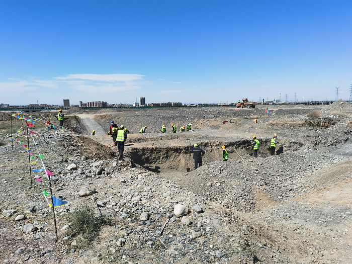 在廣袤的新疆戈壁灘上,晝間氣溫已達35℃以上,安徽安裝新疆烏蘇市供水改擴建調節蓄水池工程壩體混凝土面板澆筑施工現場,十多名職工冒酷暑、頂烈日,正在進行壩體混凝土面板澆筑施工。放空管線穿越石油管道開挖現場,機械轟鳴聲震耳欲聾,安徽安裝的工程建設者們在石油系統人員旁站監護和360度攝像頭實時監控下,面對約3000m3戈壁土艱難地進行人工開挖,他們揮汗如雨、汗流浹背,用樸實無華的行動踐行著安徽建工人的責任與擔當。