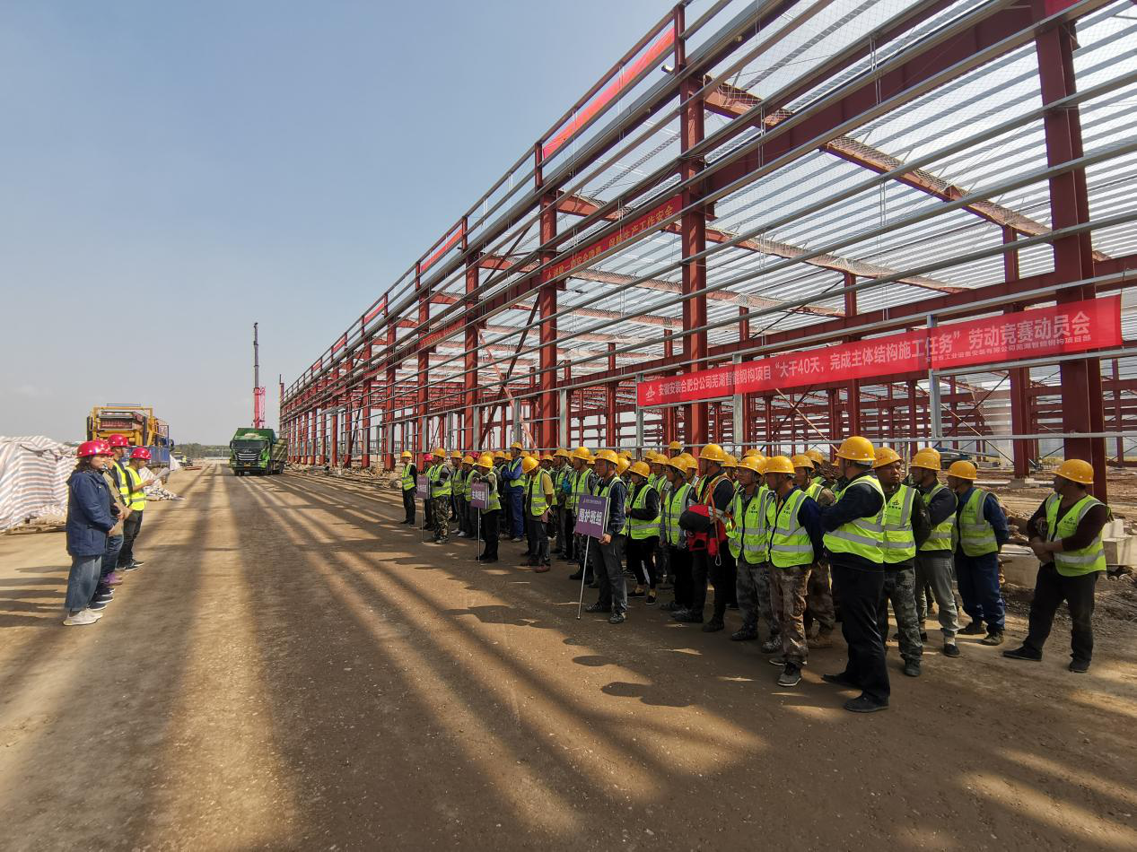 為貫徹落實(shí)集團(tuán)公司“學(xué)黨史、保安康、搶工期、爭(zhēng)一流、沖千億”勞動(dòng)競(jìng)賽活動(dòng)精神,10月29日上午,安徽安裝合肥分公司建工智能鋼構(gòu)項(xiàng)目舉行“大干40天,完成主次構(gòu)施工任務(wù)”勞動(dòng)競(jìng)賽動(dòng)員會(huì),公司紀(jì)委副書記、工會(huì)副主席王敏出席,合肥分公司副經(jīng)理夏國(guó)祥、工會(huì)副主席杜瓊、項(xiàng)目管理人員及勞務(wù)班組參加會(huì)議。