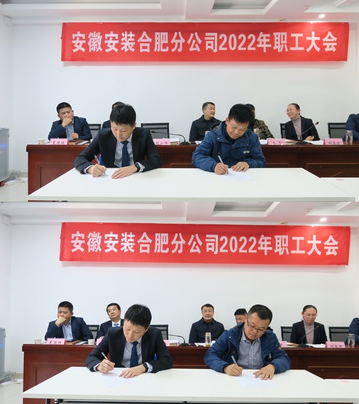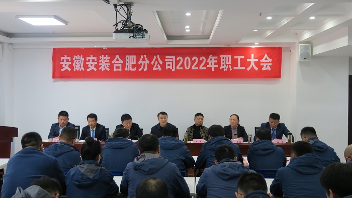 李楊在講話中,充分肯定了合肥分公司去年取得的突出成績,同時對廣大職工一年來付出的辛勤勞動和作出的貢獻表示衷心的感謝和慰問,并代表公司就有關工作提出三點意見:一要拉高標桿,迅速行動,認真學習貫徹落實集團二屆二次職代會暨2022年工作會議和公司十七屆二次職代會精神;要細化工作任務,傳導責任壓力,措施明確、責任到人,以時不我待的精神迅速投入到年度各項目標任務的分解落實中去,確保高效執行,落地見效;二要以“項目管理年”為抓手,全面提高項目管理水平。做好工期履約、項目結算、資金回收、人才培養等工作,以開展勞動競賽為有效載體,增強“開工即決戰,起步就是沖刺”的緊迫感、使命感,堅定員工信心,不斷增強工期履約意識,夯實項目成本,提升管理水平,贏得業主認可,保持市場競爭力;三要強化黨群組織工作優勢,當好橋梁和紐帶,以高質量黨建工作引領高質量發展。分公司要緊緊圍繞生產經營中心工作,開展廣大職工喜聞樂見、豐富多彩的各類活動,豐富職工群眾業余文化生活;要加強人文關懷,增進員工互相了解,提升員工凝聚力、向心力,提高員工對企業的歸屬感、責任感、幸福感。要以項目“三號聯創”為抓手,加強企業文化和人才隊伍建設,統一思想凝聚共識,為實現安徽安裝高質量發展貢獻智慧和力量。希望合肥分公司在2022年能交上一份鼓舞人心的滿意答卷!