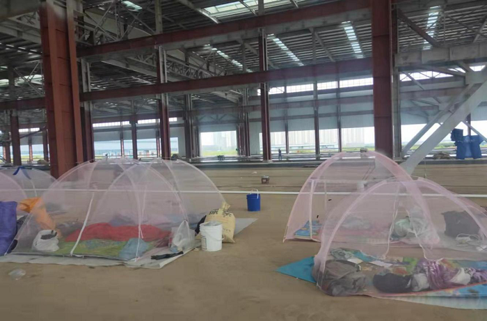 地坪壓光師傅住在現場