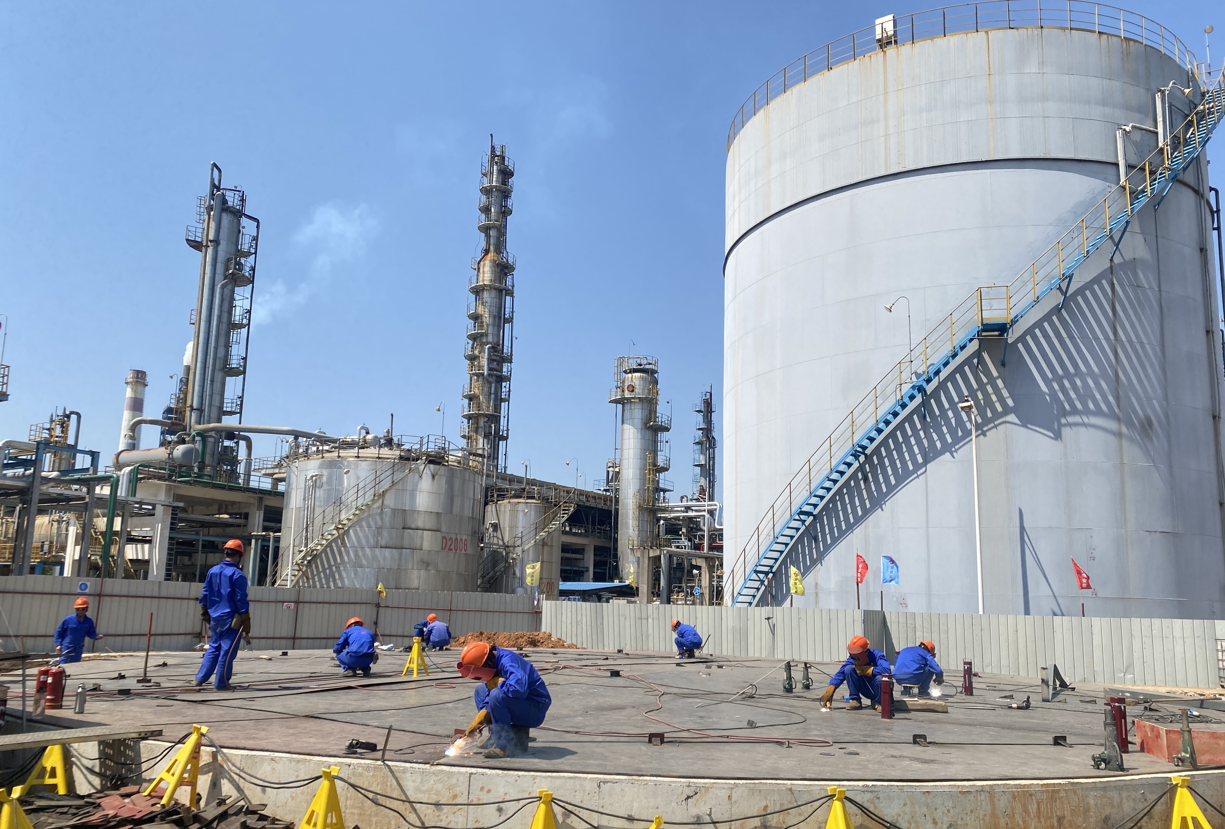 中石化安慶分公司煉油轉化工結構調整項目-200噸/小時污水汽提裝置項目施工現場,看到的是一片繁忙的景象。工期緊,任務重,項目部全體人員主動放棄休假,堅守崗位,全力推進工程進度,兵分兩路,裝置現場和預制場同時加班,同步推進,以空間換時間。挖掘機、吊車、風鎬、切割機……各式各樣施工機具此起彼伏,轟鳴不斷,都在有條不紊地作業中;焊工、架子工、起重工、鉚工……各工種緊密銜接,配合默契,沉浸在熱火朝天的勞動氛圍中……四十幾名工人們,或焊接,或打磨,或搬運,都在緊張忙碌著,不少工人師傅的勞保服都濕透了。連著幾天的高溫,污水汽提項目的建設者們依然堅守一線,勞動節里在勞動,埋頭苦干,默默奉獻,用不舍晝夜的付出奮力跑出項目建設“加速度”,弘揚了勞動精神。