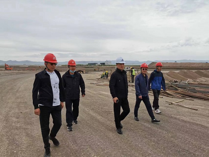 王軍一行到達施工現場后,對項目的疫情防控、施工進度、質量控制、施工重難點、安全文明施工管理、勞務管理等工作進行了詳細的了解。他得知目前有50余輛施工機械,80余名施工人員同時作業,2號中水池于五一節前已通過五方驗槽后,對項目部的施工管理水平給予高度評價。他強調:托里縣污水處理廠中水回用配套設施項目是公司打開托里市場的“敲門磚”,是新疆烏蘇分公司“立足烏蘇、輻射周邊”的經營成果,項目部管理人員一定要繼續發揚安徽建工人“特別能吃苦、特別能戰斗”的工作作風,團結奮斗、頑強拼搏,按照合同約定順利完成施工任務,為安裝公司在新疆市場的開拓增光添彩。