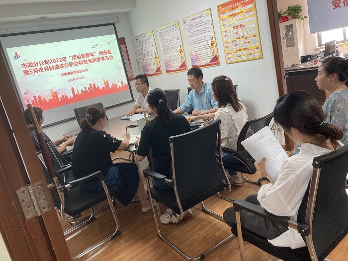 為進一步推進分公司項目管理年活動的開展,5月25日下午市政分公司在分公司會議室召開“項目管理年”推進會暨5月份成本分析會議,黨支部書記胡迎東主持會議,分公司機關員工、項目員工參加會議,會議以現場加視頻方式召開。