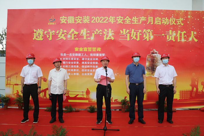 在全國第21個“安全生產月”活動到來之際,5月30日上午,安徽安裝公司2022年“安全生產月”啟動儀式在年配套1000萬臺新能源汽車及年產2億臺制冷空調壓縮機關鍵性能件制造基地項目舉行。公司黨委書記、董事長胡六中,紀委書記、工會主席李楊,副總經理趙伯平,總工程師吳繼成及機關各部門、各分公司代表參加了本次活動。