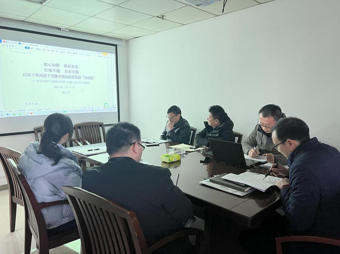 會(huì)上,分公司黨支部書記、經(jīng)理龍海健重點(diǎn)宣貫、詳細(xì)解讀了公司黨委書記、董事長(zhǎng)胡六中在公司十七屆三次職代會(huì)上所作的題為《初心如磐踔厲奮發(fā)行而不輟未來可期以實(shí)干作風(fēng)按下安徽安裝高質(zhì)量發(fā)展“加速鍵”》的報(bào)告精神,對(duì)分公司2023年度主要任務(wù)指標(biāo)和重點(diǎn)工作進(jìn)行了傳達(dá)部署。通過學(xué)習(xí),分公司全體員工對(duì)公司2022年取得的成績(jī)有了深刻的認(rèn)識(shí),進(jìn)一步明確了公司2023年的奮斗目標(biāo)、工作思路和部署安排。
