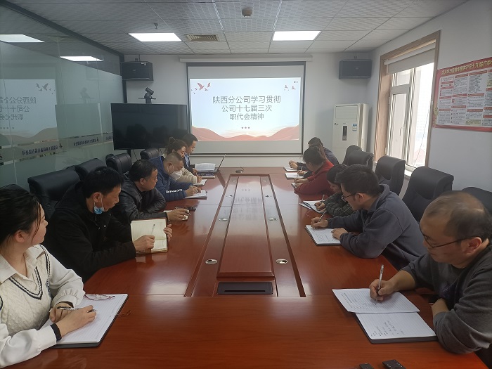 為深入學習公司十七屆三次職代會精神,全面貫徹落實會議部署要求。2月7日,陜西分公司組織召開專題學習會,會議由分公司經理、黨支部書記張寶深主持,分公司機關全體員工參會。