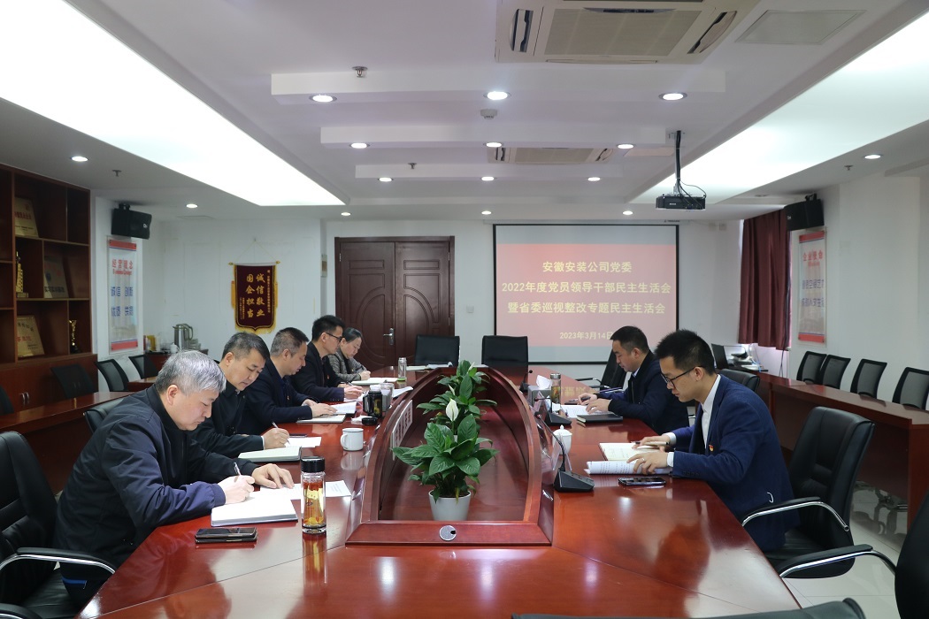 3月14日上午,安徽安裝黨委召開2022年度黨員領導干部民主生活會暨省委巡視整改專題民主生活會。建工股份公司黨委委員、副總經理黃代到會指導并講話。安徽安裝黨委書記、董事長胡六中主持會議。