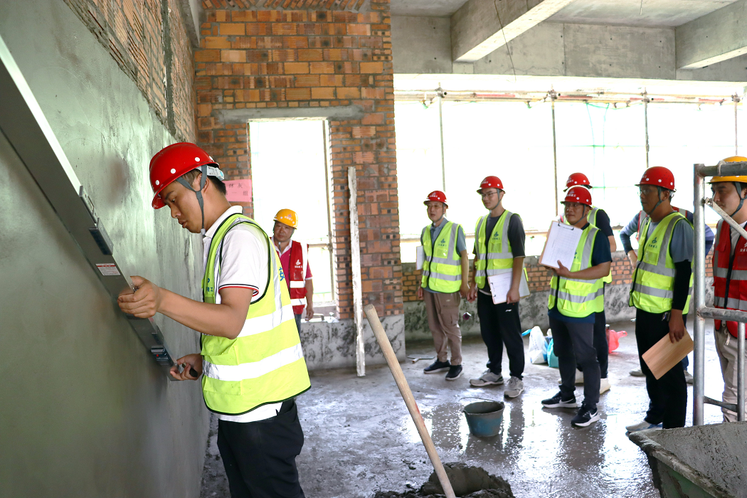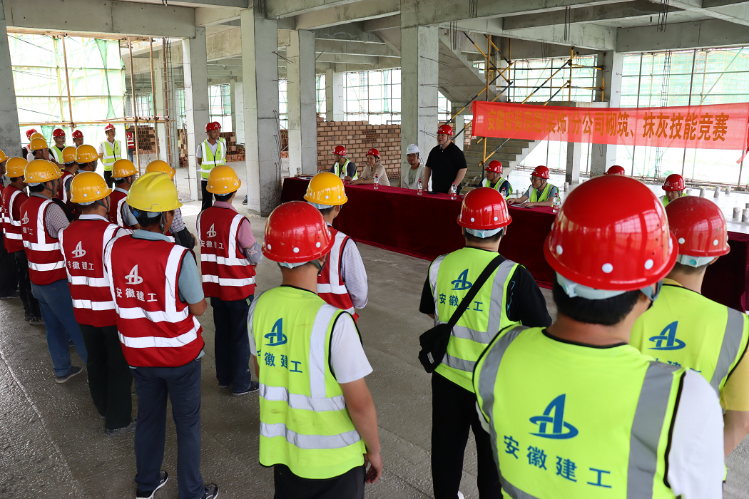此次技能大賽選在阜南一小項目施工現(xiàn)場實際作業(yè)面進行比賽,即避免了砌筑抹灰成品的浪費,真正將技能競賽做實做細,又大大提升了全員的施工質(zhì)量意識,達到了提升勞務(wù)隊伍專業(yè)技能,弘揚工匠精神,以賽促效、以賽促建的目的,整個比賽時限為2個小時。最終,評委組通過“看、摸、敲、照、靠、量、吊、套”,從完成度、觀感質(zhì)量、垂直度、平整度及文明施工等規(guī)范要求方面進行現(xiàn)場綜合打分,并分別評選出一、二等獲獎和優(yōu)勝參賽隊。