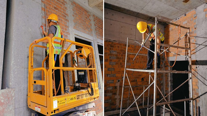 高鐵路中小學項目正在進行預埋線盒位置確認和腳手架搭設工作