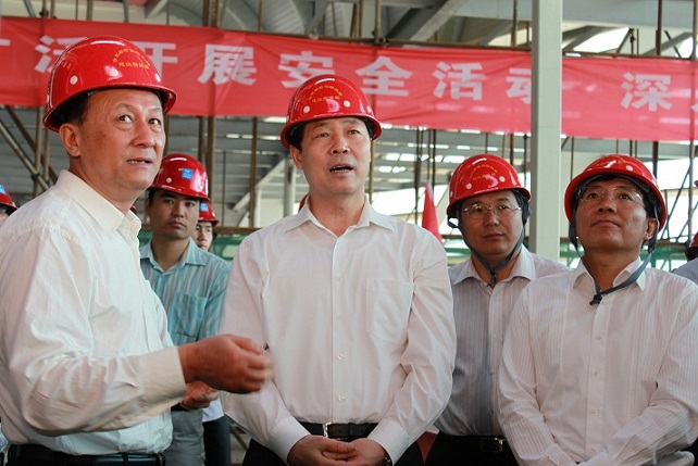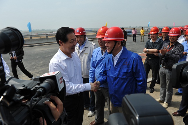 5月12日上午十時許,省委書記張寶順,省委常委、合肥市委書記孫金龍,合肥市市長吳存榮,市委秘書長兼新橋機場建設總指揮安列等一行蒞臨合肥新橋國際機場航站樓工程指導、檢查。安徽省工業設備安裝公司、中建八局、北京裝飾、中建二十四局、中煤鋼構各單位主要領導陪同檢查。