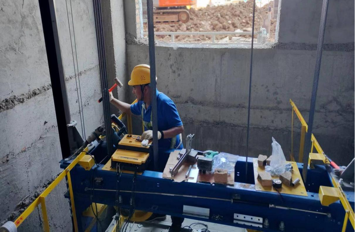 桃花科創(chuàng)產(chǎn)業(yè)園EPC總承包電梯安裝工程共有33臺(tái)電梯,目前已到貨9臺(tái),正在施工6臺(tái),其中B區(qū)1號(hào)樓2臺(tái)電梯、2號(hào)樓2臺(tái)電梯的曳引機(jī)以及轎廂拼接工作已經(jīng)完成,D區(qū)1號(hào)樓2臺(tái)電梯、2號(hào)樓3臺(tái)電梯的曳引機(jī)安裝工作也在同步施工。近期,B區(qū)、D區(qū)9臺(tái)電梯轎廂拼接工作全部完成后將會(huì)進(jìn)行電梯鋼帶安裝、導(dǎo)軌鋪設(shè)工作。