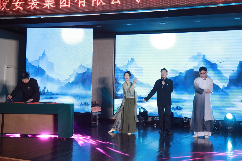 聯歡會一個個精彩的節目,博得大家的聲聲喝彩和陣陣掌聲,氣氛熱烈。在開場舞《龍騰盛世譜華章》中,聯歡會拉開序幕。新能源分公司《向光而行》展現了對未來發展的美好向往;安慶分公司《共創平安幸福年》以黃梅大鼓的形式講述安全工作的重要性;蚌埠分公司《水調歌頭》以獨唱、舞蹈及書法的形式送上祝福;公司機關的獨唱歌曲串燒《音樂學堂》帶領大家回憶童年耳熟能詳的歌曲;新疆烏蘇分公司的小伙子們帶來的舞蹈《麥西來甫》呈現了維吾爾族的民族風情;滁州分公司的詩朗誦《建工逐夢人奉獻譜“新篇”》講述了建工安裝人的辛勤與奉獻;合肥分公司的《滁州賦》為觀眾帶來優美的國風視覺享受;電梯分公司《舞動青春》散發著青春的活力與激情。最后,在共唱《相親相愛》中聯歡會落下帷幕。