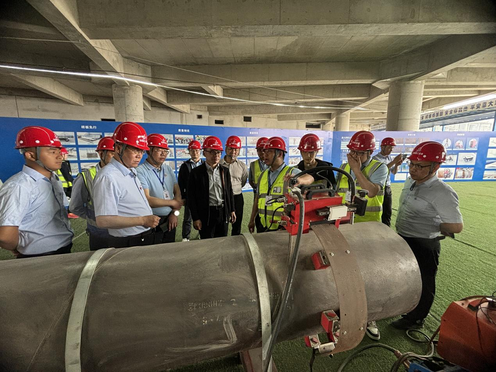 隨后一行人前往項(xiàng)目施工現(xiàn)場(chǎng)觀摩,雙方對(duì)現(xiàn)場(chǎng)的協(xié)調(diào)管理、BIM管綜布局、多工種交叉作業(yè)等提出了各自的經(jīng)驗(yàn)和見解,王永利一行特別對(duì)項(xiàng)目上采用的焊接機(jī)器人技術(shù)表示了贊賞。