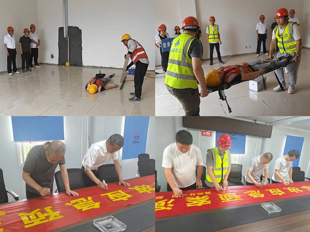 本次演練涵蓋事故發生、信息上報、預案啟動、醫療救援、現場搶險、安全疏散、現場評估、事故分析等內容,涵蓋了事故應急救援處置的各個環節。在演練過程中,各參演人員本著“安全第一,確保有序,責任明確,落實細節”的原則全身心的投入到演練中直至演練完成,充分鍛煉了項目現場應急救援小組的組織能力、指揮能力和協調能力,同時讓全體項目人員意識到,強化安全紅線意識,堅守安全底線,是對企業負責,更是對自己與家人負責,達到了應急演練的預期效果。演練結束后,參加人員在橫幅上鄭重地簽下了自己的名字。
