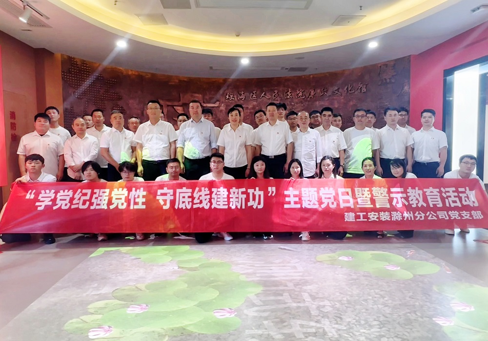 為扎實(shí)推進(jìn)黨紀(jì)學(xué)習(xí)教育走深走實(shí),進(jìn)一步增強(qiáng)分公司黨員干部黨紀(jì)觀念和廉潔意識,培育分公司“清廉文化”干事創(chuàng)業(yè)氛圍,5月16日下午,建工安裝滁州分公司黨支部組織分公司領(lǐng)導(dǎo)班子成員、機(jī)關(guān)部門負(fù)責(zé)人、項(xiàng)目經(jīng)理、全體黨員和團(tuán)員青年共40余人,赴瑤海區(qū)人民法院廉政文化館開展“學(xué)黨紀(jì)強(qiáng)黨性、守底線建新功”主題黨日暨警示教育活動。