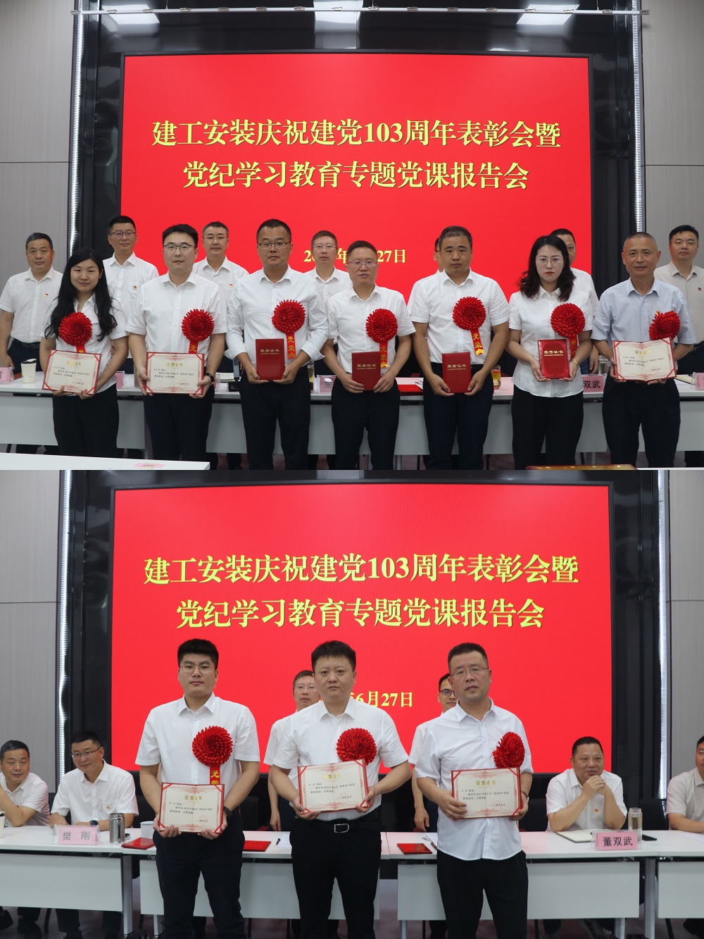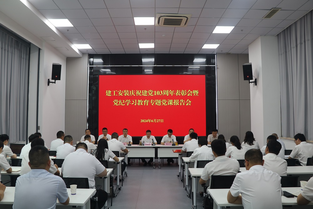 為慶祝中國共產黨成立103周年,扎實推進黨紀學習教育走深走實。6月27日上午,建工安裝黨委召開慶祝建黨103周年表彰會暨黨紀學習教育專題黨課報告會。公司領導班子成員出席會議,會議由公司黨委副書記、副總經理周正平主持。