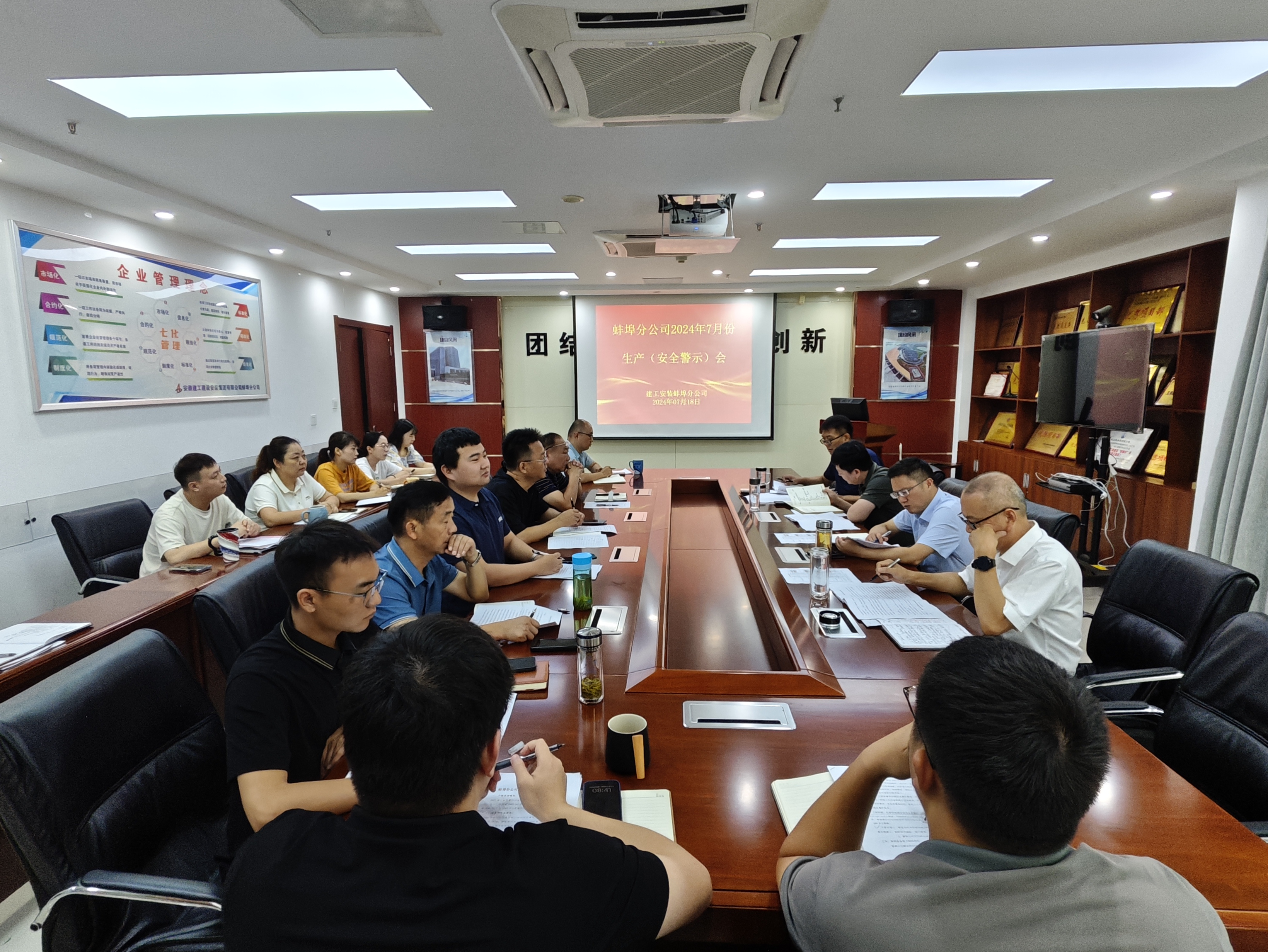 7月18日上午,蚌埠分公司組織召開7月份生產(安全警示)會,分公司領導班子、所屬各項目經理、機關各部門負責人及工程管理部全體員工參加會議,會議由副經理張斌主持。