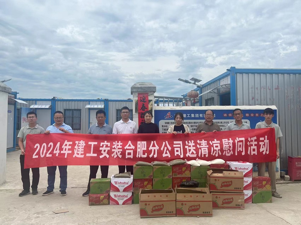 盛夏已至,驕陽似火,建工安裝合肥分公司省內外各項目現場掀起“沖刺三季度”大干熱潮。在合理組織施工的同時,分公司多措并舉,通過聯合屬地項目部開展送清涼等慰問活動,為建設者安全健康提供保障。