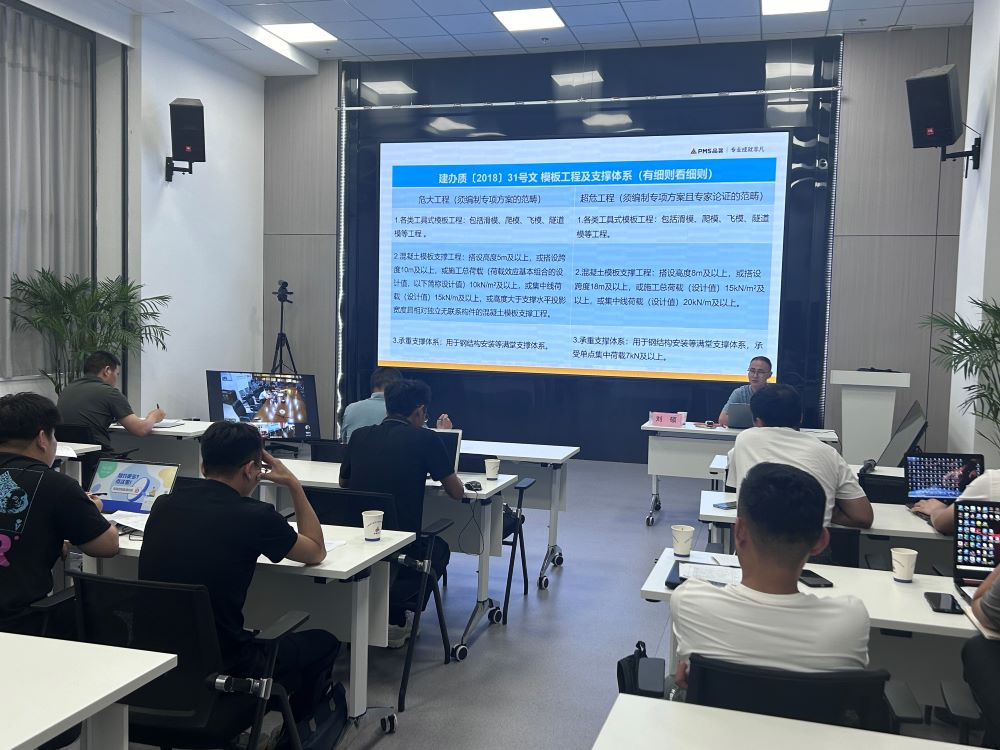 培訓會上,總工辦(技術中心)副主任夏輝以《機電安裝工程質量提升、技術優化分析》為題,分別從機電安裝工程標準規范、創優策劃、圖紙會審、工程技術優化案例分析等方面進行全面細致講解并提出合理化工程創優思路和建議;外請專家劉碩以《危大工程之模板工程、臨時用電方案標準及技術計算》為題,結合有關文件要求,闡述了危大工程專項方案編制內容及要求,并對危大工程相關計算進行講解演練,參培學員進行實操練習。此次培訓進一步提高項目管理人員方案編制水平及計算能力,加強項目技術管理水平,為打造綜合型項目管理人才隊伍提供堅實有力的保障。