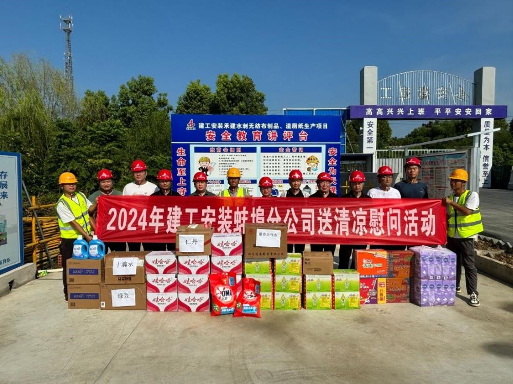 分公司領導班子先后到六鋼大廈(酒店)工程施工總承包項目、蚌埠高新區(qū)電子信息產業(yè)園EPC項目室外廊架管網工程項目、年產2000噸氯蟲苯甲酰胺原藥及中間體項目、安徽深巖醫(yī)藥化工科技有限公司醫(yī)藥中間體及新材料項目廠區(qū)單體工程項目、水刺無紡布制品.濕廁紙生產項目現(xiàn)場,為一線施工人員準備了礦泉水、冰紅茶、綠豆、西瓜等防暑降溫物品,對他們的辛勤付出表示感謝,并反復叮囑大家要注意防暑降溫,合理安排施工和休息時間,確保施工安全。