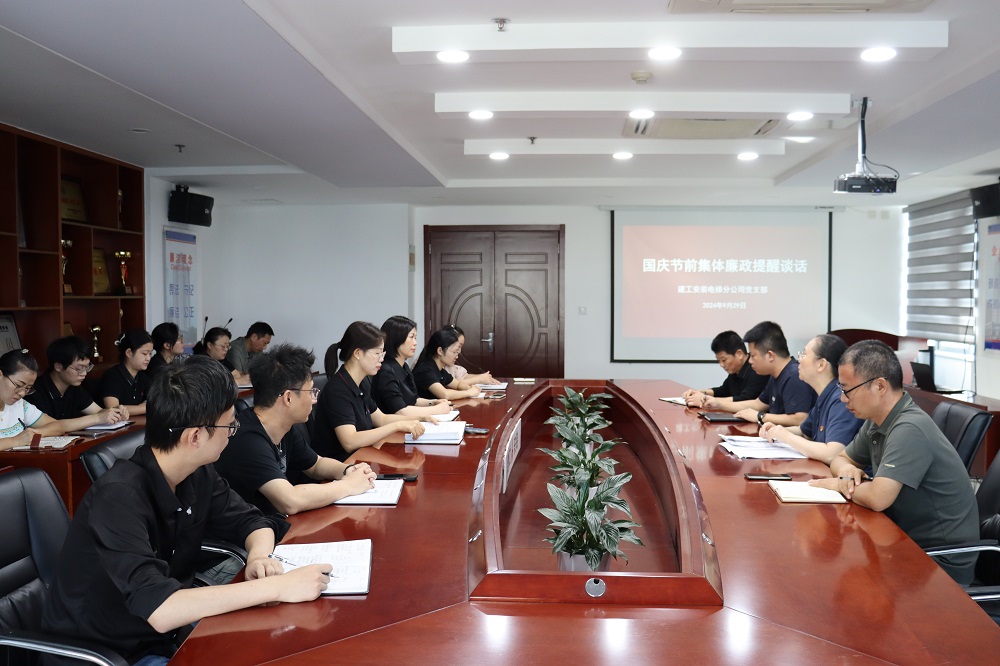 “國慶”臨近,為進一步嚴明紀律要求,積極營造風清氣正的節日氛圍, 建工安裝電梯分公司黨支部于9月29日上午開展節前集體廉政提醒談話。