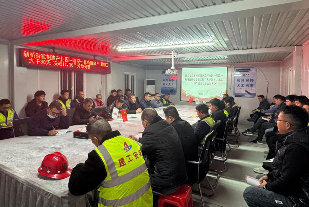 近日,建工安裝滁州分公司合肥新橋智能制造產業園一階段一標機電安裝項目部召開“大干30天 決戰11.30”勞動競賽總結表彰大會,表彰競賽期間涌現出的先進個人和優勝參建班組。分公司勞動競賽領導小組成員、項目部全體員工及參建班組負責人等參會,會議由分公司黨支部書記、副經理程茂麗主持。