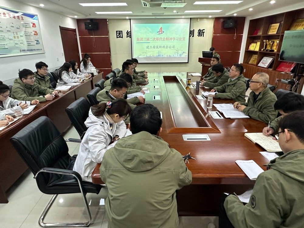 2月 13 日,建工安裝蚌埠分公司召開專題學習會,全面深入學習宣貫安徽建工集團三屆二次職代會會議精神。分公司班子成員、機關全體員工以及在蚌項目管理人員參會。會議由分公司黨支部書記、經(jīng)理趙銘亮主持。