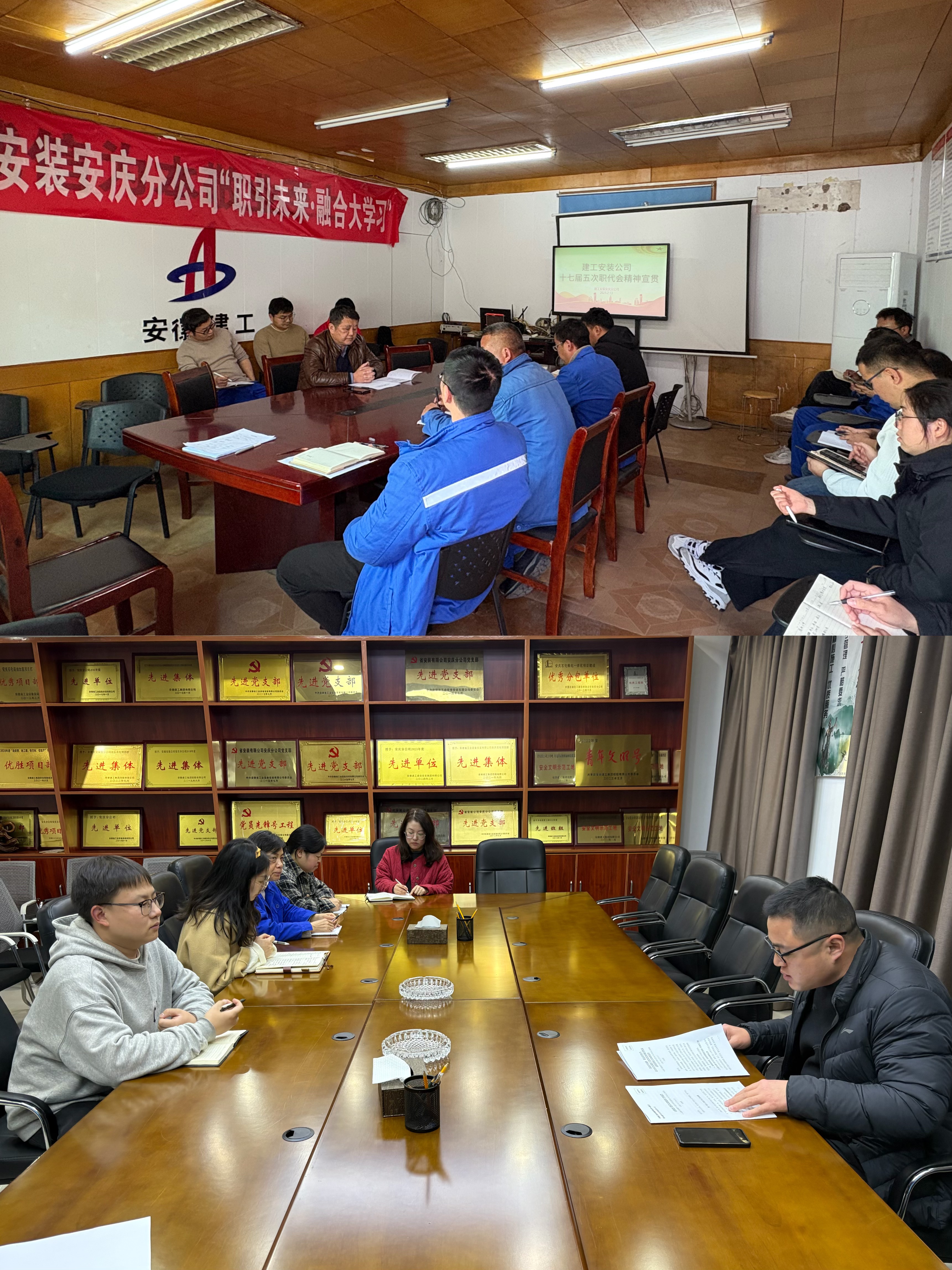 2月28日,建工安裝安慶分公司召開專題學習會,深入學習宣貫公司十七屆五次職代會暨2025年工作會議精神。分公司黨支部副書記李雙江主持會議,分公司項目部30余名員工參加會議。