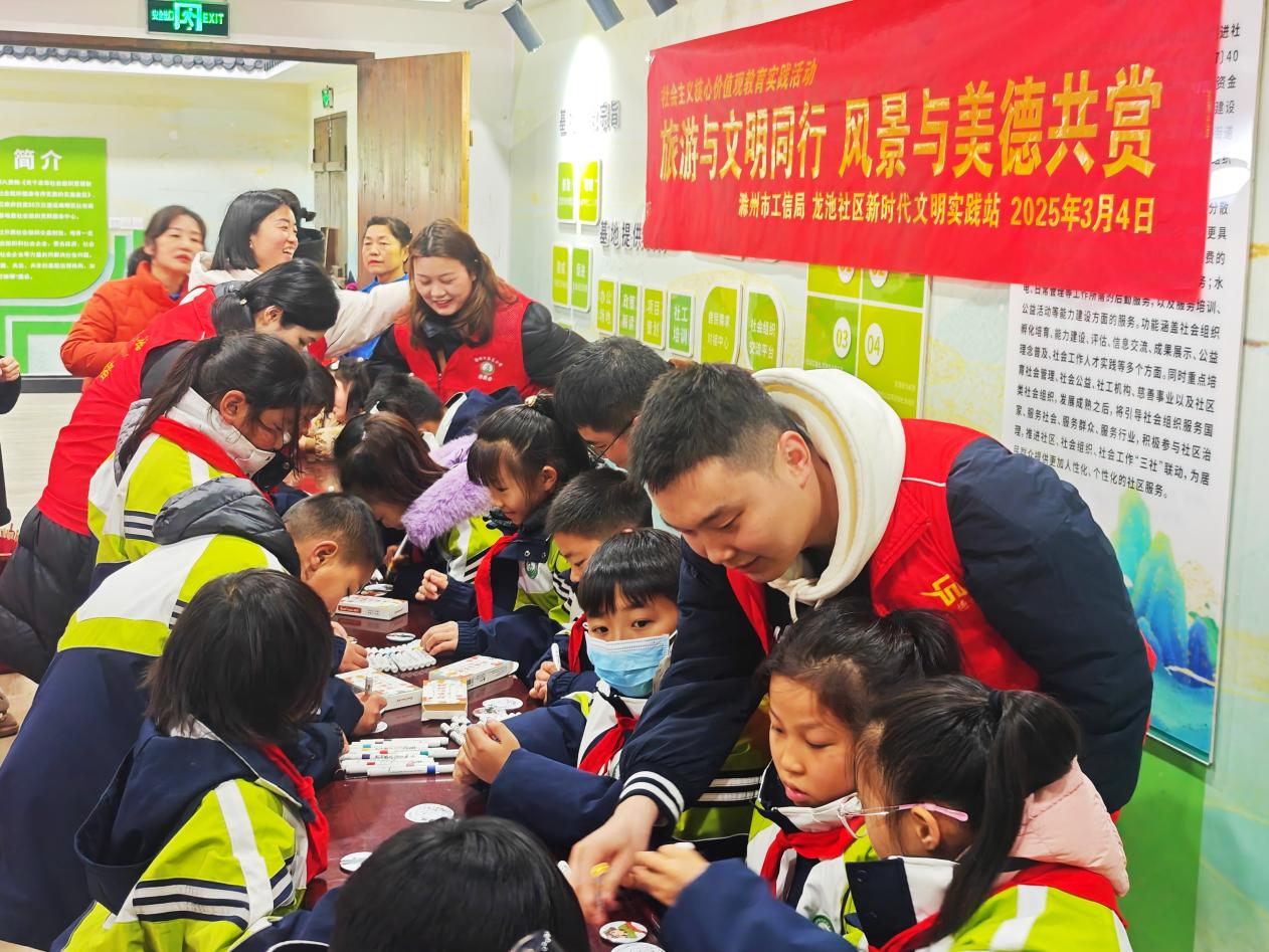 在活動(dòng)現(xiàn)場(chǎng),團(tuán)員青年們化身“志愿導(dǎo)師”,帶領(lǐng)15名小學(xué)生共同制作“雷鋒紀(jì)念徽章”,小朋友們充分發(fā)揮想象力,努力描繪出自己心中的雷鋒,興高采烈地開(kāi)始了DIY雷鋒主題徽章的制作。從繪制、涂色到壓版,青年志愿者們一邊手把手指導(dǎo)孩子們完成徽章創(chuàng)作,一邊講述雷鋒同志助人為樂(lè)、無(wú)私奉獻(xiàn)的感人故事。一枚枚印有“向雷鋒同志學(xué)習(xí)”“紀(jì)念雷鋒”等字樣的徽章,在孩子們的巧手中誕生,成為傳承雷鋒精神的生動(dòng)載體,也在小朋友們心間種下了“雷鋒精神”的種子。“我要像雷鋒叔叔一樣,多幫助同學(xué)!”一名小朋友佩戴著親手制作的徽章,堅(jiān)定地說(shuō)道。